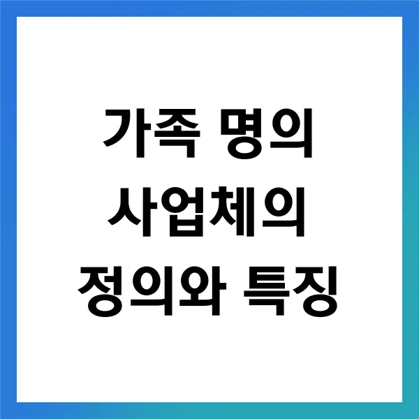 가족 명의 사업체는 가족 구성원 중 한 명의 이름으로 등록되어 운영되는 기업 형태 를 의미합니다. 이러한 사업체는 대부분 가족의 재산 보호, 세금 절감, 상속 계획 등 다양한 이유 로 설립되며 대체로 중소기업 형태로 운영됩니다. 특히, 한국의 중소기업청에 따르면, 2022년 기준으로 전체 사업체의 약 70%가 가족이 소유하거나 운영하는 구조를 취하고 있다고 보고 되었습니다. 놀랍지 않으신가요?