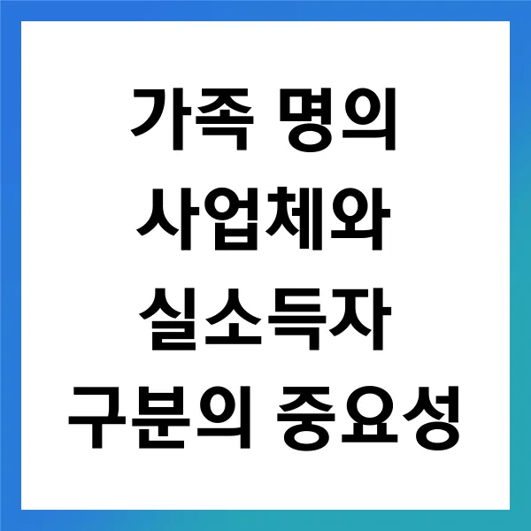 가족 명의 사업체와 실소득자 구분의 중요성 은 단순한 경제적 문제가 아닙니다. 이는 법적 책임과 가족 간의 신뢰 문제 까지 아우르는 복합적인 사안입니다. 실소득자를 명확히 식별하고 투명하게 관리 하는 것은 불필요한 갈등과 법적 분쟁을 예방 하는 데 필수적입니다. 또한, 가족 간의 신뢰를 유지하면서도 공정한 재정 관리 를 보장하는 것은 사업체의 장기적인 성공을 위해 반드시 필요합니다. 따라서 가족 명의 사업체 운영 시 실소득자 구분 에 신중을 기할 필요가 있습니다.