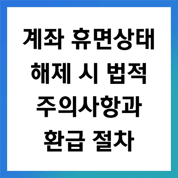 휴면 계좌를 해제한 후에는 몇 가지 중요한 유의사항 이 있습니다. 먼저, 해제된 계좌의 상태에 따라 다양한 변수들이 존재하므로, 꼭 확인해야 할 사항들이 있습니다. 특히 휴면 상태로 인해 발생할 수 있는 금융적 손실이나 법적 문제 를 최소화하기 위해서는 각별한 주의가 필요합니다.