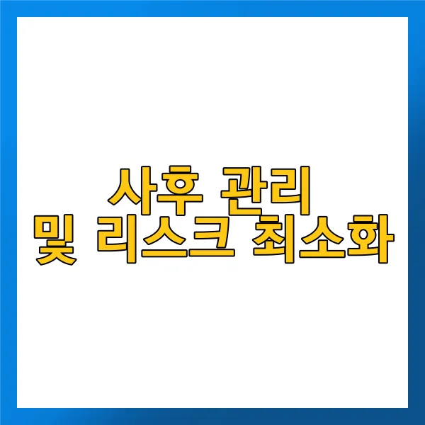 이러한 사후 관리 및 리스크 최소화 전략들은 단순한 정비 차원이 아니라, 기업의 지속 가능성과 성장 가능성을 높이는 데 중요한 역할을 합니다. 기업이 법적 리스크를 잘 관리할수록, 안정적인 경영 환경을 조성할 수 있으며, 부정적인 여파를 최소화할 수 있습니다. 따라서 지속적으로 시행 가능한 관리 전략을 수립하고 실천하는 것이 필요합니다. 🌟