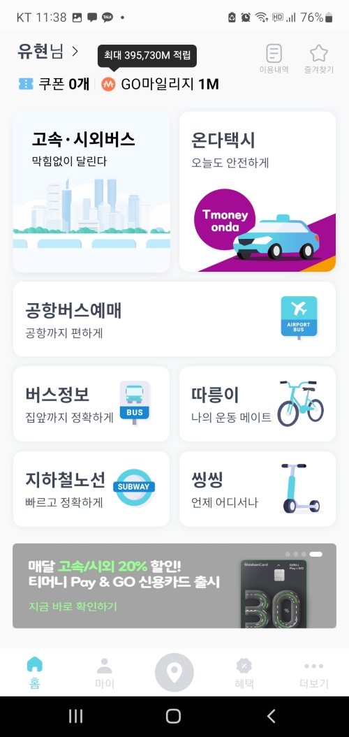 고속버스 빠른예매는 티머니고! TmoneyGO