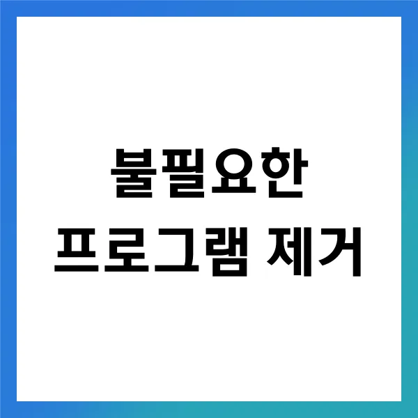 첫 번째로, 사용하지 않는 프로그램이나 애플리케이션을 제거하는 것이 중요합니다. 일반적으로, 사용자가 설치한 프로그램 중 약 30%는 실제로는 잘 사용하지 않는 경우가 많습니다. 이러한 프로그램들은 시스템 자원, 특히 CPU와 메모리 를 소모하게 되어 성능 저하를 유발합니다. 저도 예전에 수많은 소프트웨어를 설치해 놓고 잘 사용하지 않아 속도가 느려지는 경험을 했는데, 필요 없는 것들을 정리하고 나니 확연히 빠른 부팅과 실행 속도를 느낄 수 있었습니다.
