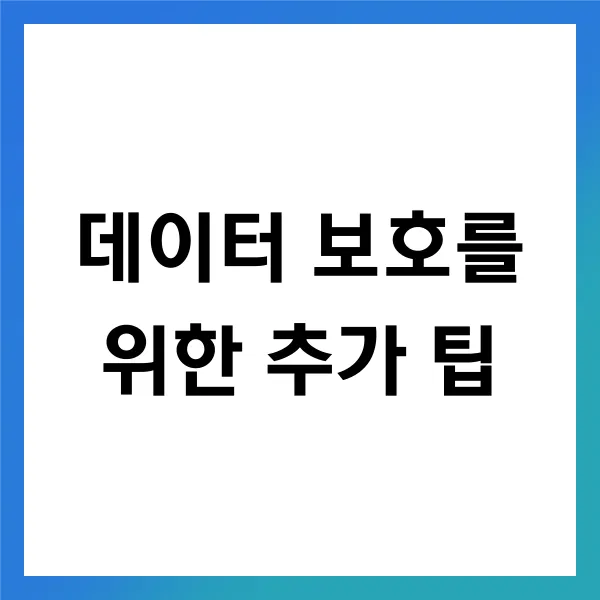 이와 같은 추가적인 조치를 통해 데이터 보호를 한층 더 강화할 수 있습니다 . 개인적으로 위의 팁들을 활용하면서 느낀 점은, 작은 습관이 큰 차이를 만든다는 것입니다 . 데이터 보안 관리가 어렵다고 느껴질 수 있겠지만, 조금만 신경 쓰면 훨씬 더 안전한 디지털 생활을 누릴 수 있습니다.