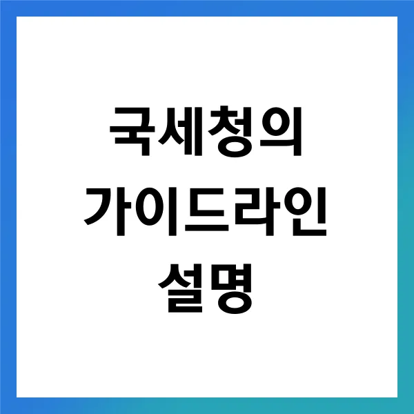 이처럼 국세청의 가이드라인은 매우 구체적이고 철저한 기준을 바탕으로 하고 있으며, 납세자들은 이러한 지침을 면밀히 숙지함으로써 세무 신고 시 불필요한 실수나 불이익을 피할 수 있습니다 . 이는 결국 정확한 세무 처리를 통해 납세자 본인의 권리와 의무를 성실히 이행하는 데 기여할 것입니다. 국세청은 앞으로도 이러한 가이드라인을 통해 납세자들에게 명확한 방향성을 제시하고, 투명하고 공정한 과세 시스템을 구축해 나갈 것입니다 .