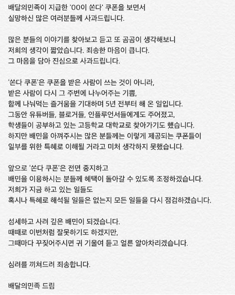 배달의 민족 쿠폰 마케팅이 문제가 되어