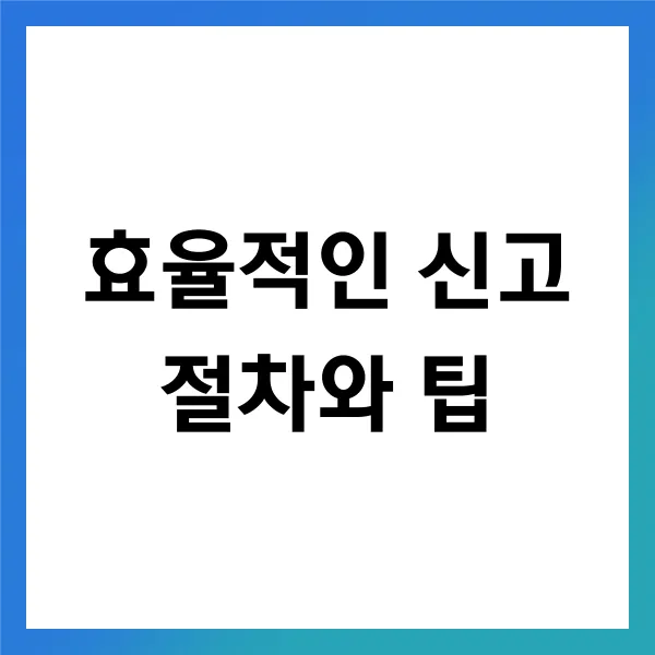 두 번째로, 적절한 신고 기간을 준수하는 것 이 효율적인 신고의 핵심입니다. 부가가치세는 일반적으로 반기별(6개월 단위)로 신고 및 납부해야 하며, 종합소득세는 매년 5월에 신고합니다. 신고 기간을 놓치면 가산세가 부과될 수 있으므로, 일정 관리는 필수적입니다. 따라서, 이러한 신고기간을 놓치지 않기 위해 스마트폰 캘린더나 알람 서비스를 이용해 미리 알림을 설정해 두는 것도 좋은 방법입니다.