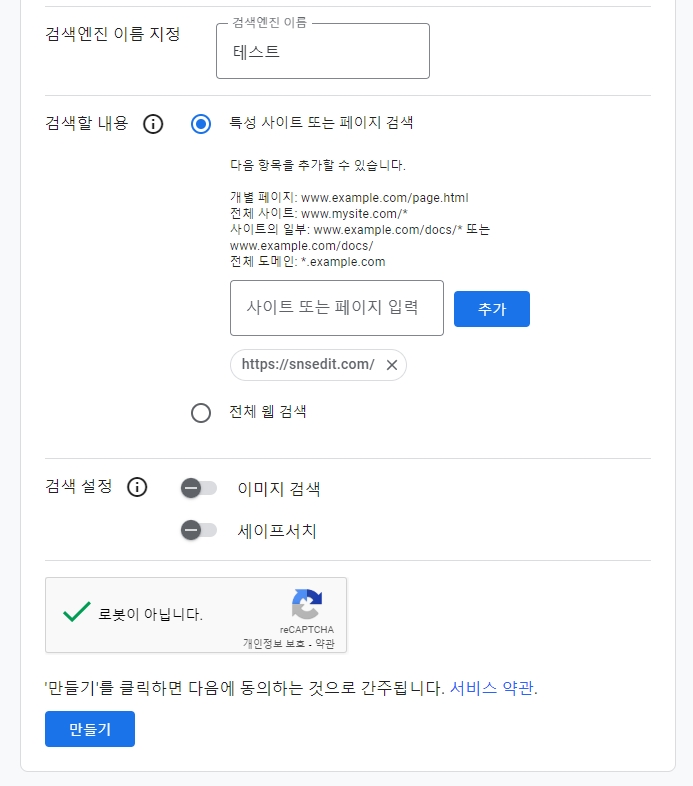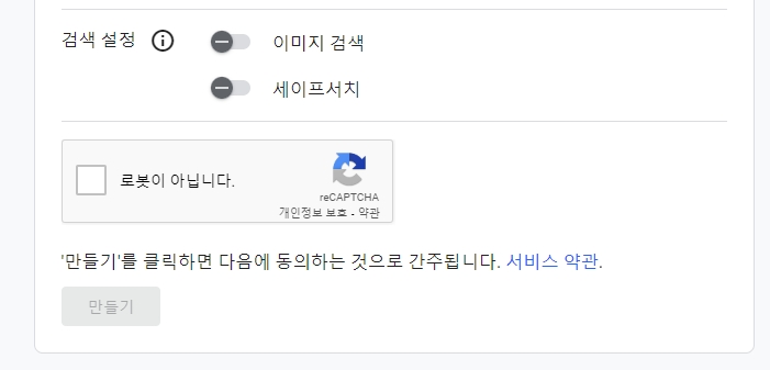 ⑤아래로 검색 설정은 그냥 내두시고, 맨 아래 '만들기'버튼 선택