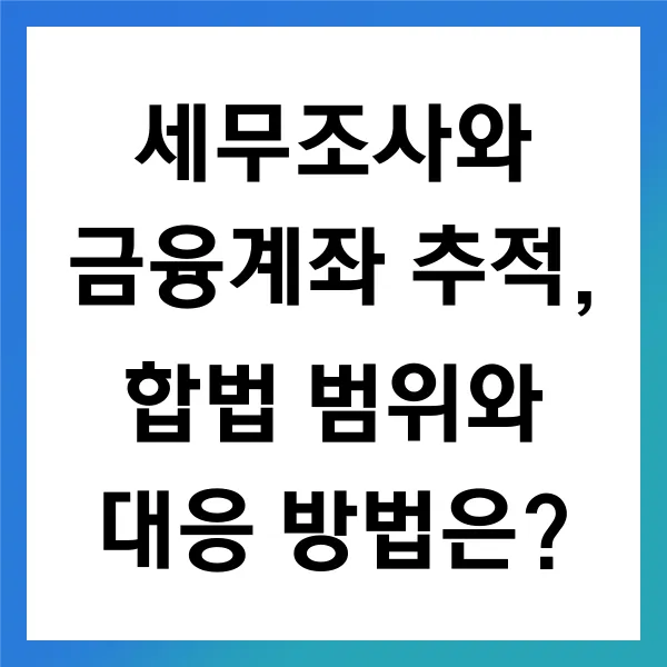 이처럼 금융계좌 추적과 관련된 세무조사에 적절히 대비하기 위해서는 철저한 준비와 적절한 정보 관리가 중요합니다. 신중하고 체계적인 대응 전략을 통해 복잡한 세무 문제를 효과적으로 관리하십시오 .