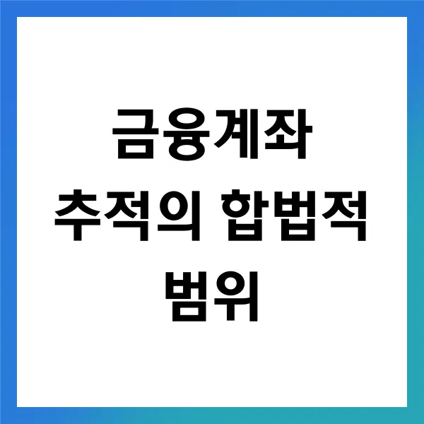 요약하면, 금융계좌 추적의 합법적 범위 는 매우 제한적이고 구체적인 조건 하에 수행됩니다. 이러한 절차는 종종 재정 투명성을 높이고 법의 집행을 보장 하기 위한 것이며, 개인의 사생활 및 금융 기밀 보호와의 균형 을 맞추기 위해 신중하게 규제되어 있습니다. 실질적으로, 이러한 금융거래 추적은 국가의 세수 확보와 경제의 건전성 을 위한 필수적인 수단임을 인식할 필요가 있습니다. 이는 단순한 감독을 넘어 국민과 기업의 공정한 세금 부담을 보장하는 중요한 역할 을 합니다.