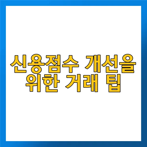 신용점수를 개선하기 위한 거래 방법은 여러 가지가 있습니다. 최근 연구에 따르면, 신용점수는 개인의 재정적 신뢰성을 결정하는 중요한 요소로 작용하며, 300점에서 850점 사이의 점수 체계를 가집니다. 고신용자는 일반적으로 700점 이상의 점수를 유지합니다. 따라서 그 이상을 목표로 하는 것이 매우 중요합니다. 신용점수에 긍정적인 영향을 미치는 거래 팁을 소개하겠습니다!