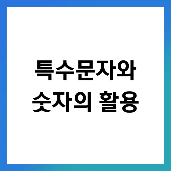 비밀번호를 더욱 강력하게 만들기 위해서는 특수문자와 숫자를 적절하게 활용하는 것이 필수적입니다 . 실제로, 사이버 보안 전문가들은 비밀번호에 포함된 특수문자가 많을수록 해킹의 위험을 크게 줄일 수 있다 고 경고합니다. 예를 들어, 비밀번호에 숫자와 특수문자를 포함시키면, 공격자가 비밀번호를 무작위로 추측하는 데 수년이 걸릴 수 있습니다. 이는 단순한 영문 대소문자만 사용했을 때보다 몇 배 더 긴 시간입니다 . 통계적으로, 8자리의 비밀번호에 숫자와 특수문자를 추가하면 경우의 수가 80억 가지 이상으로 증가합니다 !