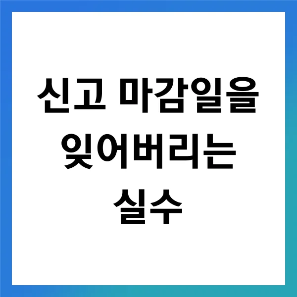 신고 마감일을 놓치는 실수는 생각보다 많은 납세자들이 반복하는 흔한 오류 입니다. 특히, 기업가와 프리랜서에게는 신고 일정을 실행할 때 현업 중심의 스케줄로 넘치기 때문에 , 신고 마감일을 간과하기 쉽습니다. 이러한 실수는 추후 큰 비용이 발생할 수 있으며 , 예기치 않게 벌금을 물기도 합니다. 정확한 마감일을 준수하는 것은 단순한 행정 절차가 아니라, 경제적 손실을 방지하는 필수적인 조치 입니다.