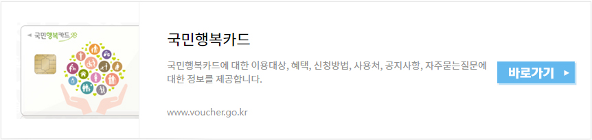 대한민국 정부에서 발급하는 카드로, 소득이 낮은 국민들에게 생활비 지원을 제공하는 제도입니다. 이 카드를 소지한 국민은 바우처 형태로 다양한 지원을 받을 수 있습니다. 국민행복카드는 건강보험 임신·출산 진료비 지원사업을 비롯하여 다양한 사업에서 활용됩니다.
