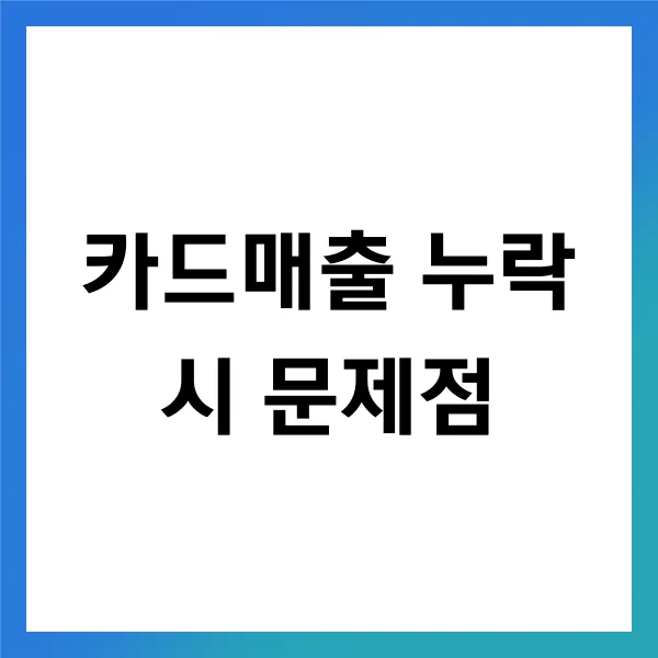 종합적으로, 카드매출의 누락은 단순히 몇 건의 거래를 놓치는 것을 넘어 경영 전반에 걸친 심각한 문제로 확산될 수 있습니다. 이는 재무적 손실, 경영상의 비효율성, 법적 제재 등 다각적인 문제를 일으킬 수 있으며, 장기적으로 사업의 지속 가능성을 위협 할 수 있습니다. 따라서 모든 매출이 정확하고 투명하게 기록되고 관리될 수 있도록 철저한 관리와 시스템 점검 이 필요합니다. 이러한 예방적 조치가 없다면, 사업의 안정성과 성장성을 저해하는 중대한 리스크를 감수해야 할 것입니다.