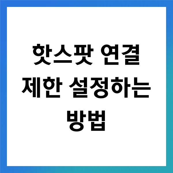 이렇게 단계별로 핫스팟 연결 제한을 설정하는 방법을 안내해 드렸습니다. 각 단계를 하나씩 따라 하다 보면, 보다 안전하게 핫스팟을 운영할 수 있을 것입니다. 처음 시도할 때는 조금 어렵게 느껴질 수 있지만, 몇 번 해보면 금방 익숙해지실 겁니다.
