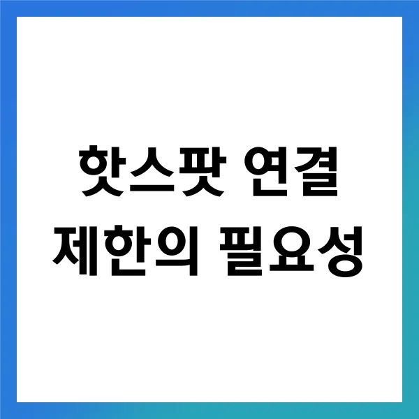 이처럼 핫스팟 연결 제한의 필요성은 매우 분명합니다. 편리함과 보안을 함께 고려해야 하는 시대에서 , 저와 같은 경험을 가지신 분들이라면 그 중요성을 더욱 잘 느끼리라 생각합니다. 핫스팟을 통해 안전하고 효율적인 인터넷 사용을 위해서는 연결 제한 설정이 필수적입니다.