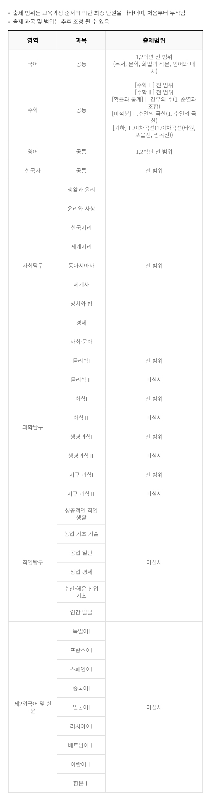 이 시험은 읽기, 쓰기, 수학 및 비판적 사고와 같은 영역에서 학생의 능력을 평가합니다. 이 평가 결과는 대학 및 기타 고등 교육 기관 입학의 지표로 사용되어 한국 학생들에게 중요한 시험입니다.