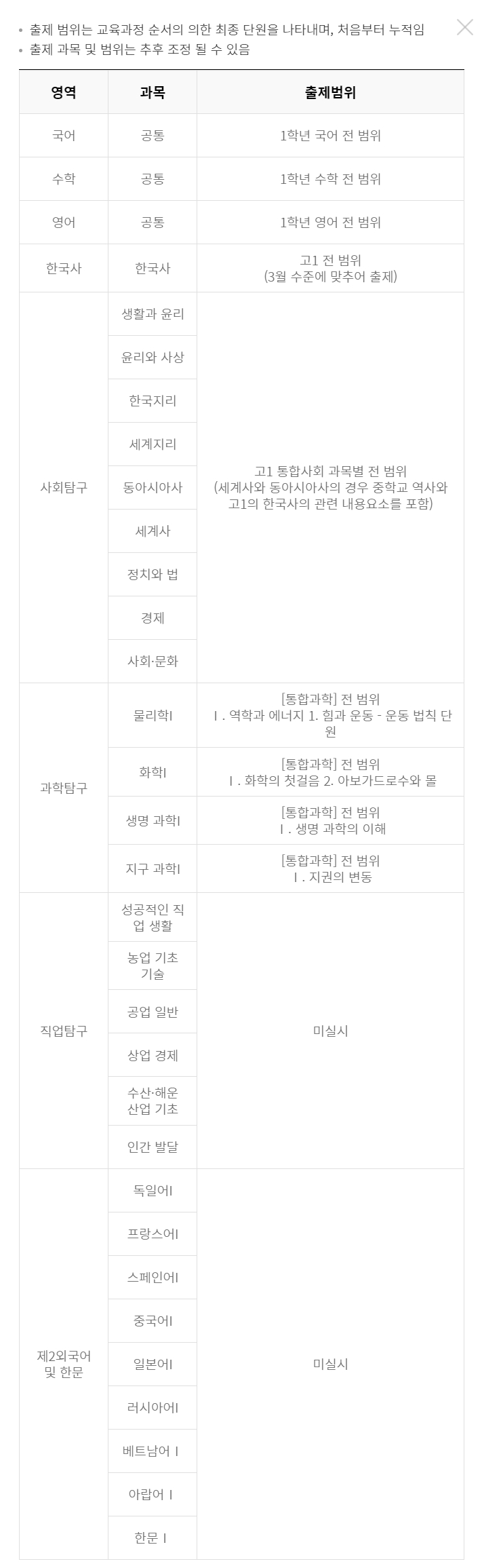 고1에게는 낯설은 환경에서의 시험형태를 경험하게 됩니다. 좌절감이 찾아 올 수도, 약간의 두근거림도 신선할 지 모를 일이지만 수능을 위한 모든 모의고사는 나를 체크하는 중요한 포인트 임을 알아야합니다. 전국 연합 모의고사 외에도 사설 모의고사 일정도 체크해 수능시험을 미리 경험하는 것도 추천드립니다.