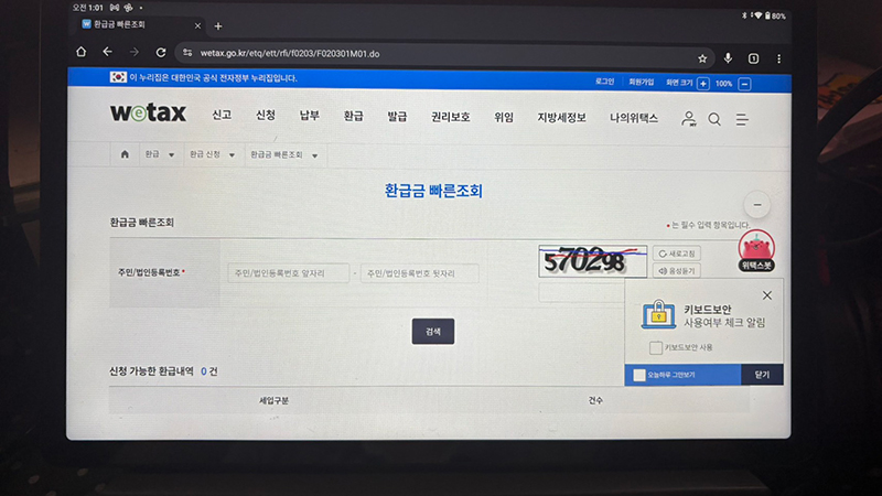 - 로그인(간편인증) → 환급금 조회/신청