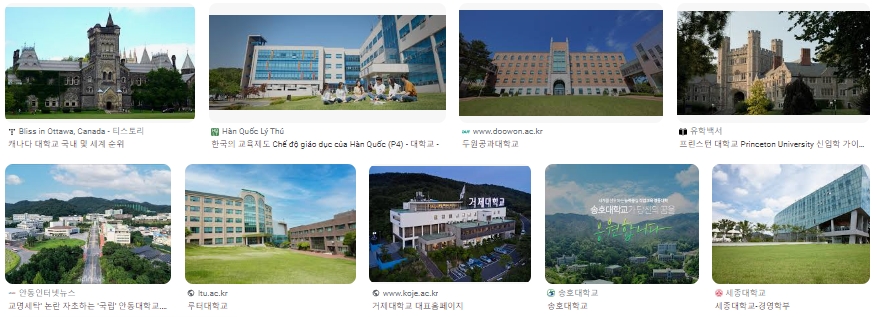 가야대학교, 가천대학교, 가톨릭관동대학교, 가톨릭꽃동네대학교, 가톨릭대학교, 강남대학교, 강릉원주대학교, 강원대학교, 건국대학교, 건국대학교(글로컬), 건양대학교, 경기대학교, 경남대학교, 경동대학교, 경북대학교, 경상국립대학교, 경성대학교, 경운대학교, 경일대학교, 경희대학교, 계명대학교, 고려대학교, 고려대학교(세종), 고신대학교, 공주대학교, 광운대학교, 광주대학교, 광주여자대학교, 국민대학교, 군산대학교, 금오공과대학교, 김천대학교, 나사렛대학교, 남부대학교, 남서울대학교, 단국대학교, 대구가톨릭대학교, 대구대학교, 대구한의대학교, 대신대학교, 대전대학교, 대진대학교, 덕성여자대학교, 동국대학교, 동국대학교(경주), 동덕여자대학교, 동명대학교, 동서대학교, 동신대학교, 동아대학교, 동양대학교, 동의대학교, 루터대학교, 명지대학교, 목원대학교, 목포가톨릭대학교, 목포대학교, 목포해양대학교, 배재대학교, 백석대학교, 부경대학교, 부산가톨릭대학교, 부산대학교, 부산외국어대학교, 부산장신대학교, 삼육대학교, 상명대학교, 상지대학교, 서강대학교, 서경대학교, 서울과학기술대학교, 서울대학교, 서울시립대학교, 서울신학대학교, 서울여자대학교, 서원대학교, 선문대학교, 성결대학교, 성공회대학교, 성균관대학교, 성신여자대학교, 세명대학교, 세종대학교, 세한대학교, 송원대학교, 수원대학교, 숙명여자대학교, 순천대학교, 순천향대학교, 숭실대학교, 신라대학교, 신한대학교, 아주대학교, 안동대학교, 안양대학교, 연세대학교, 연세대학교(미래), 영남대학교, 영산대학교, 예수대학교, 용인대학교, 우석대학교, 우송대학교, 울산대학교, 원광대학교, 위덕대학교, 유원대학교, 을지대학교, 이화여자대학교, 인제대학교, 인천가톨릭대학교, 인천대학교, 인하대학교, 전남대학교, 전북대학교, 전주대학교, 제주대학교, 조선대학교, 중부대학교, 중앙대학교, 중원대학교, 차의과학대학교, 창신대학교, 창원대학교, 청운대학교, 청주대학교, 초당대학교, 총신대학교, 추계예술대학교, 충남대학교, 충북대학교, 강서대학교, 평택대학교, 포항공과대학교, 한경대학교, 한국교통대학교, 한국기술교육대학교, 한국공학대학교, 한국성서대학교, 한국외국어대학교, 한국체육대학교, 한국항공대학교, 한국해양대학교, 한남대학교, 한동대학교, 한라대학교, 한림대학교, 한밭대학교, 한서대학교, 한성대학교, 한세대학교, 한신대학교, 한양대학교, 한양대학교(ERICA), 한일장신대학교, 협성대학교, 호남대학교, 호서대학교, 호원대학교, 홍익대학교
