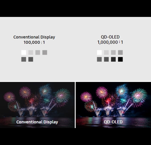 QD-OLED 기술은 디스플레이 화면을 혁신하고 한 단계 끌어올렸습니다. 이 기술을 사용하면 디스플레이의 명암비가 훨씬 높아져 시각적 효과가 더욱 생생하고 사실적으로 표현됩니다.